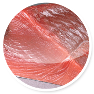 Тунец который мы поставляем, был выловлен в море, а не разведен в искусственных водоемах. Эту рыбу не кормили специальными добавками для получения определенного цвета.