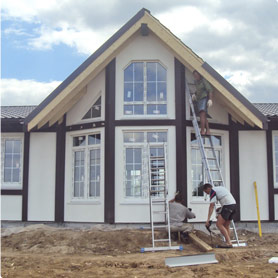 Все работы от сборки каркаса до отделки фасада ведутся на производстве в идеальных тепло-климатических условиях, поэтому осадки и погода никак не влияют на сроки и качество сборки дома.